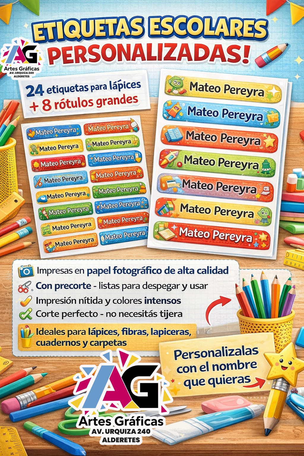 🎒✏️ ETIQUETAS ESCOLARES PERSONALIZADAS – PAPEL FOTOGRÁFICO